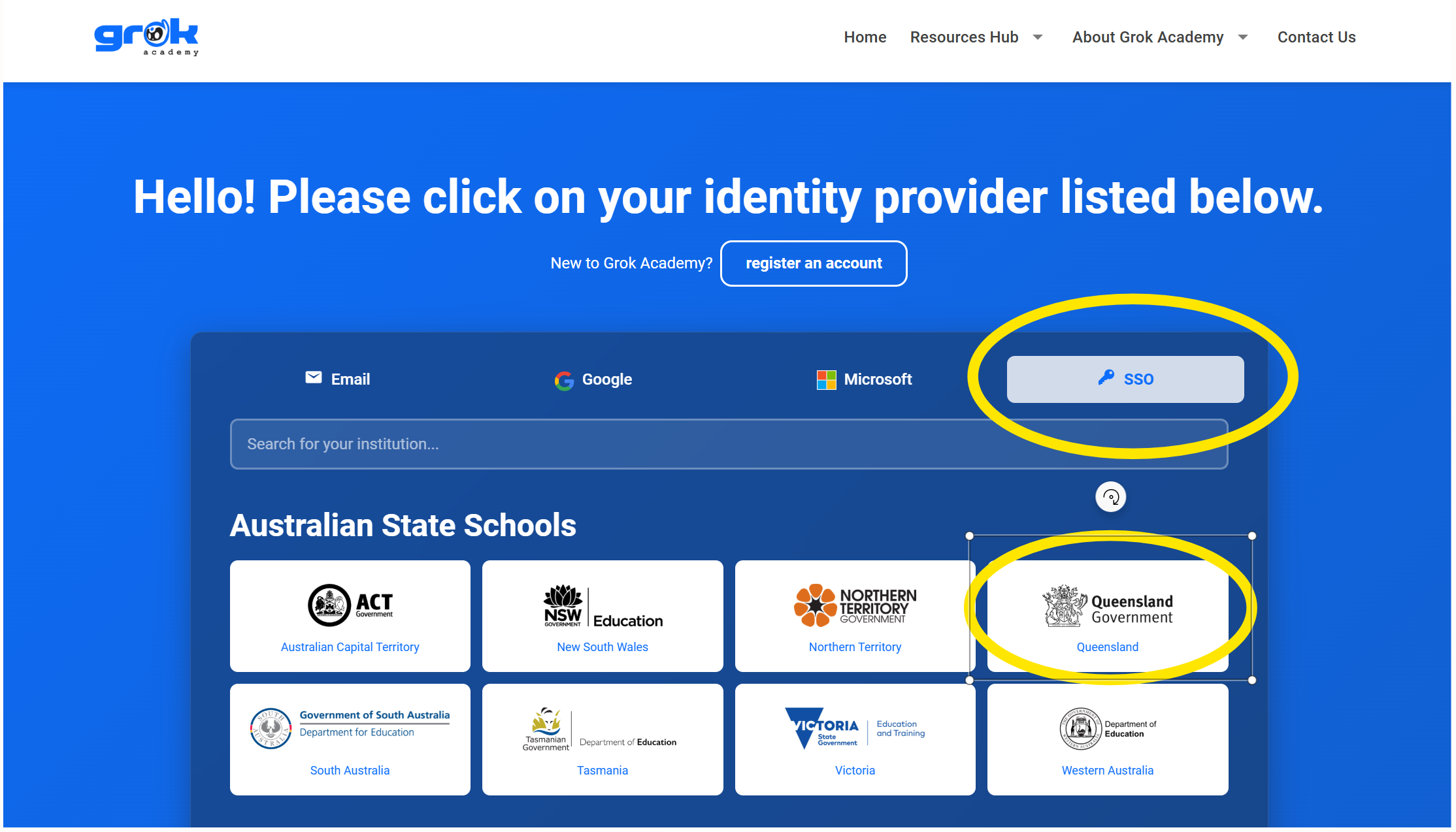 You will then be redirected to the Queensland DoE SSO login page. Once you have logged in there, you will be redirected back to Grok.