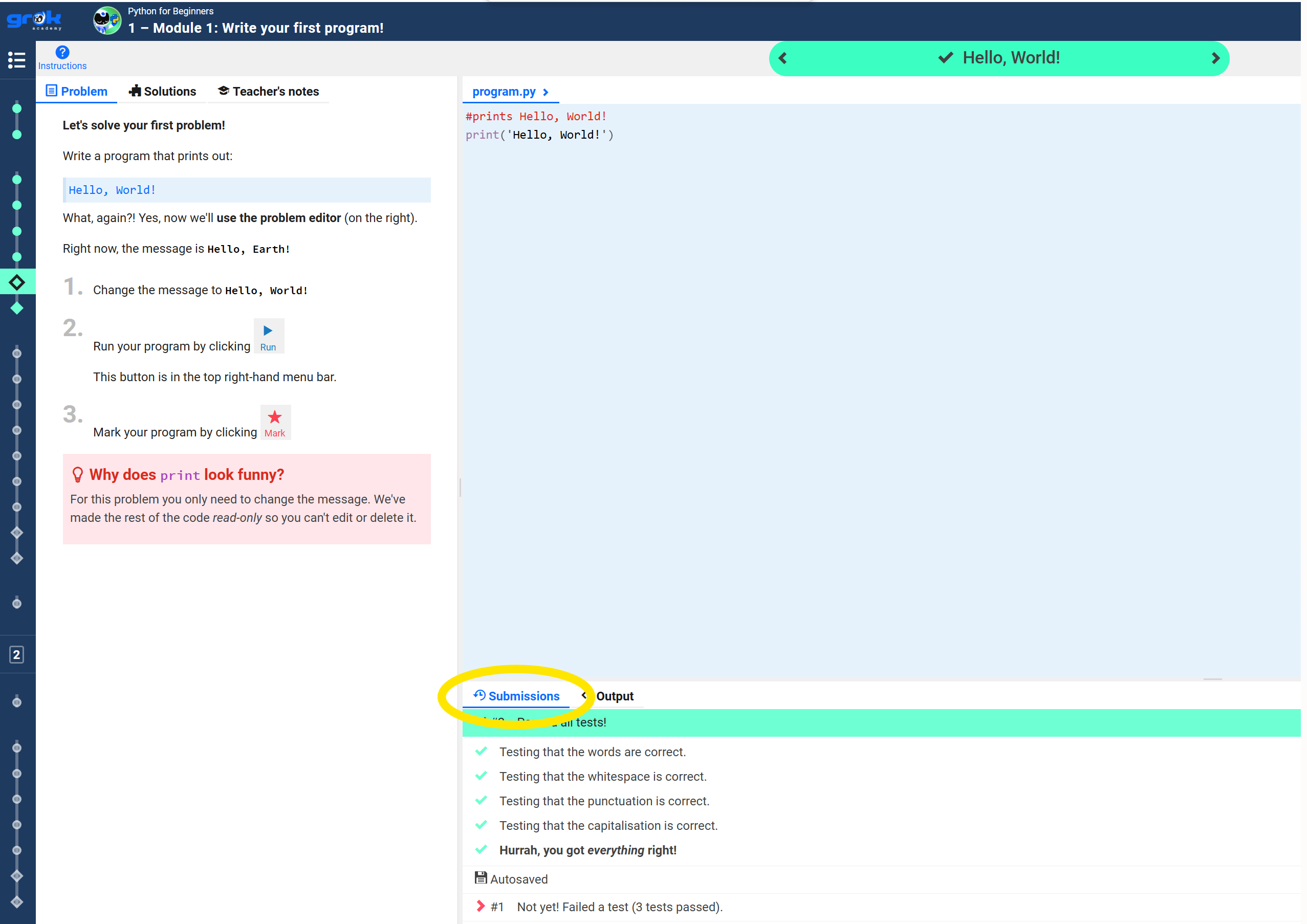 Then the submissions log looks and acts the same as it does on other courses.