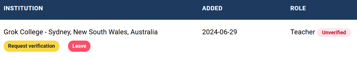 In your account settings, click the yellow "Request verification" for your school or institution. Note that only users who are registered as a Teacher at their school/institution can request verification.